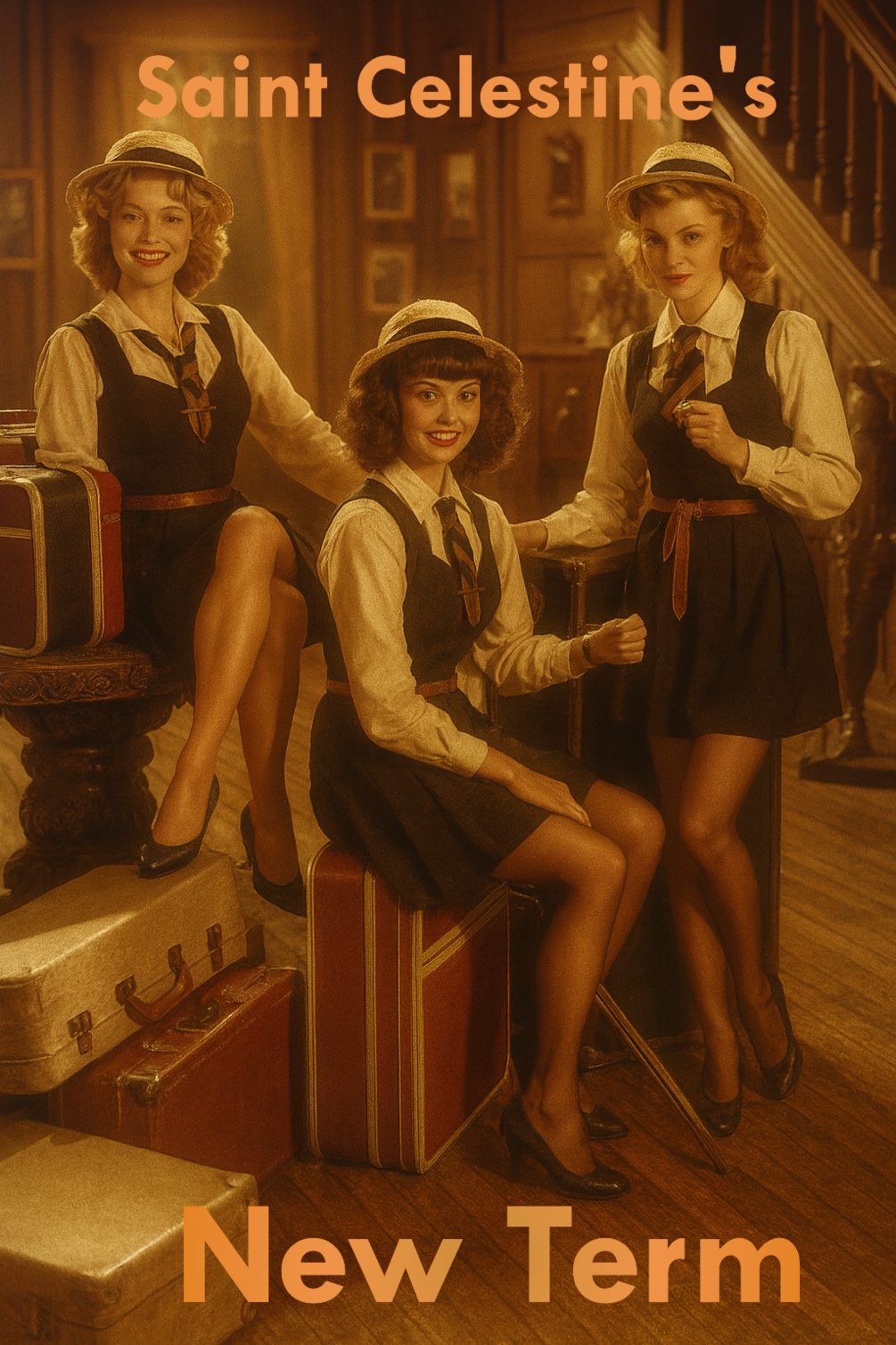 Three young ladies arrive at Saint Celestine’s for the new term.