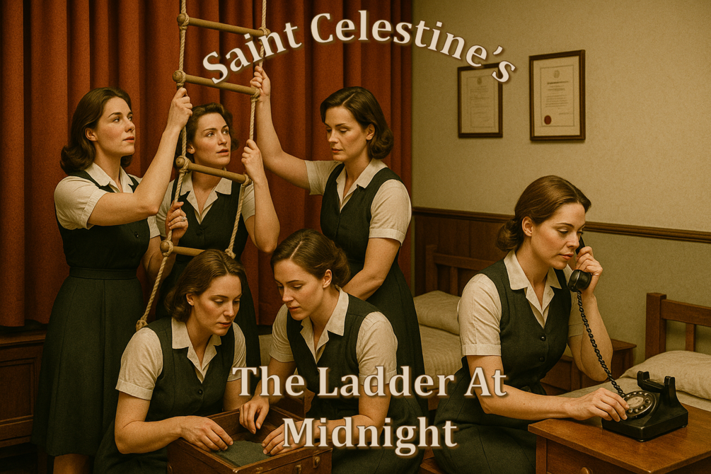 Late one night at Saint Celestine’s — the most prestigious finishing school in the country — four young ladies slip from their dormitory window into the darkness.